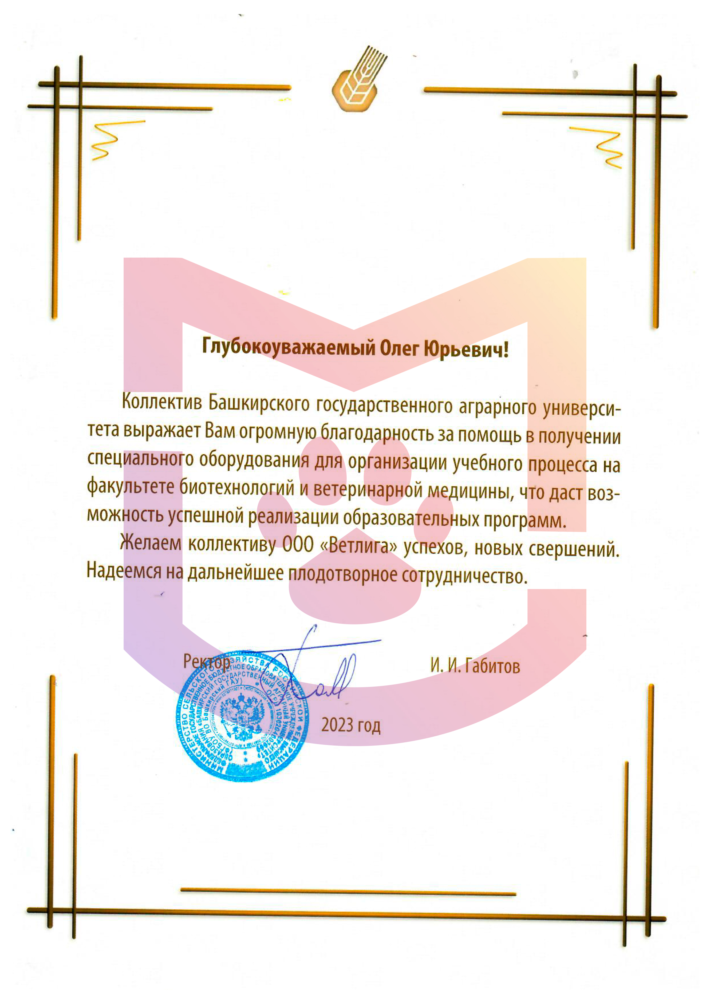 ГлавнаяОтзывыГосударственные учрежденияБлагодарственное письмо от Башкирского государственного аграрного университета