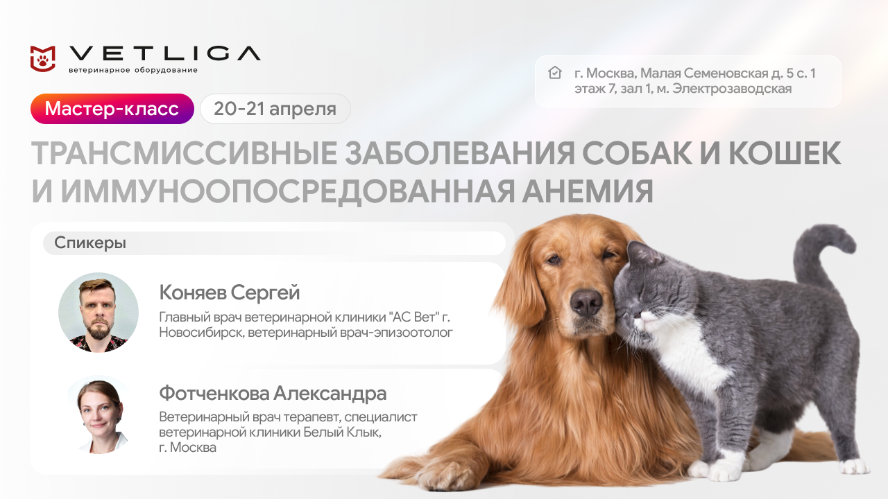 В Москве при поддержке VETLIGA пройдет мастер-класс «Трансмиссивные заболевания собак и кошек и иммуноопосредованная анемия» — практическое событие для врачей, которым важно уверенно работать и разбираться в векторных инфекциях.