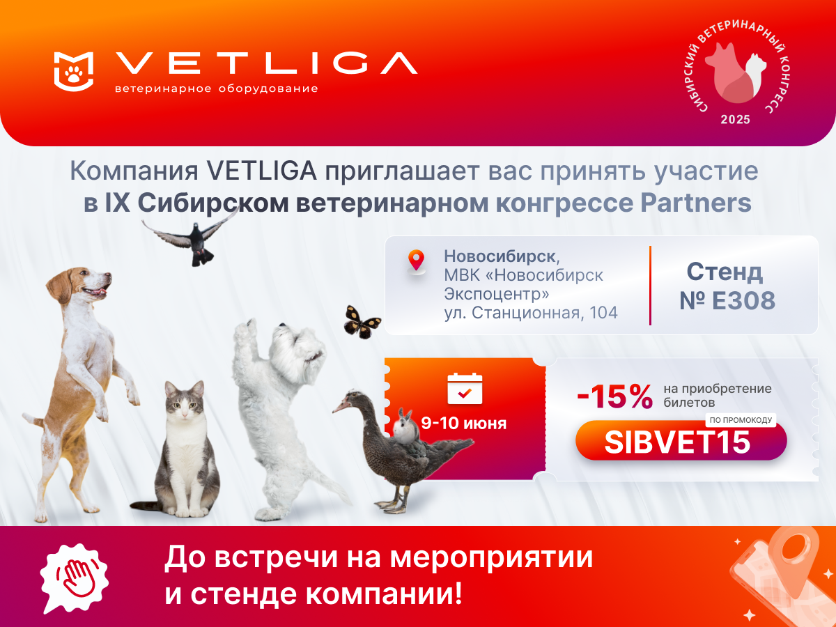 Приглашаем стать частью этого важного события, пообщаться с коллегами, задать вопросы экспертам, узнать больше о современных технологиях в ветеринарии, посетив стенд компании VETLIGA.