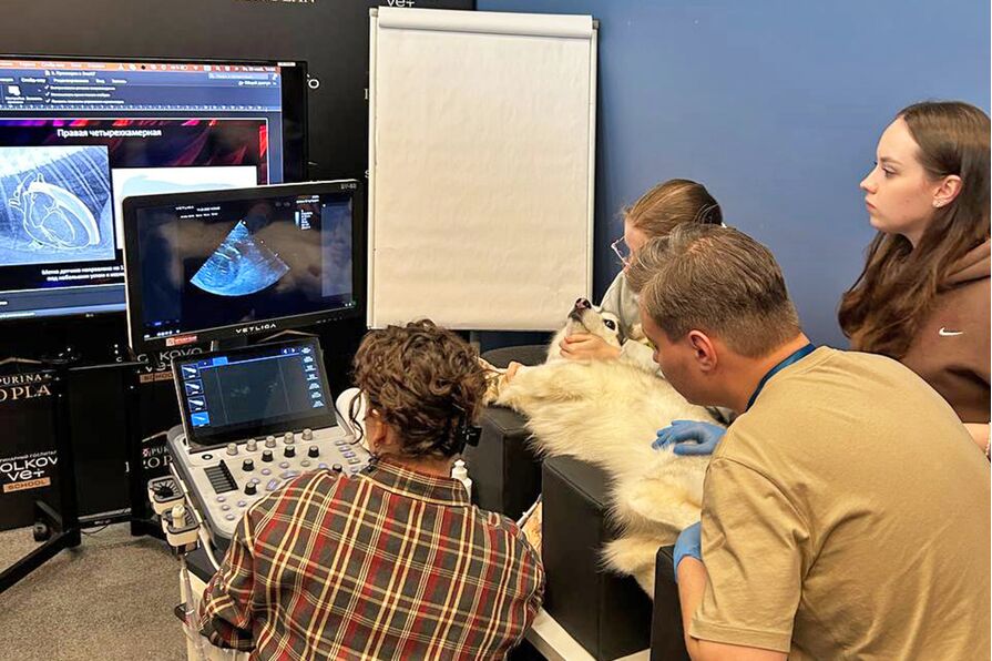 Под руководством преподавателей — Алисы Климовой (ветеринарный госпиталь Skolkovo Vet) и Марины Горбачёвой (ветеринарный центр «Оригами») — участники изучили базовые настройки и принципы визуализации, разобрали ключевые проекции и дополнительные методы исследования сердца.