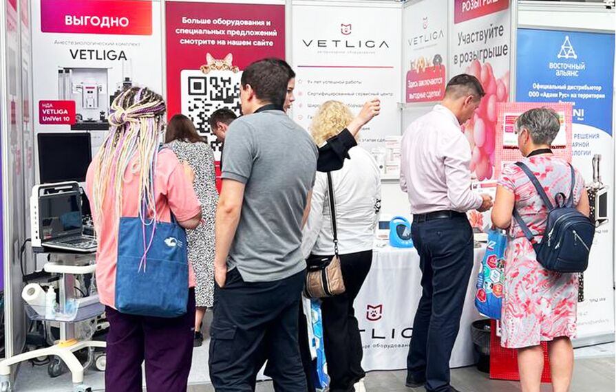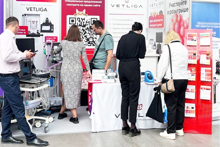 Образовательный блок мероприятия дополнила выставка ветеринарной техники, где производители и дистрибьюторы демонстрировали оборудование, инструменты и товары для ветеринарной медицины. Как партнер мероприятия и участник выставки, компания VETLIGA представила решения по оснащению ветеринарных клиник. Специалисты презентовали ультразвуковые аппараты собственной торговой марки (VETLIGA SV20 и VETLIGA M30Vet), анестезиологическое оборудование (НДА VETLIGA UniVet 10, ИВЛ VETLIGA R420, насосы VETLIGA V100/S100/S200), лабораторное оборудование (анализатор газов крови и электролитов VETLIGA C-01), оборудование функциональной диагностики (тонометр VETLIGA VT-10, ЭКГ VETLIGA EMS-3 vet). В качестве бонуса компания VETLIGA разыграла 10 подогревателей геля для УЗИ среди посетителей стенда.