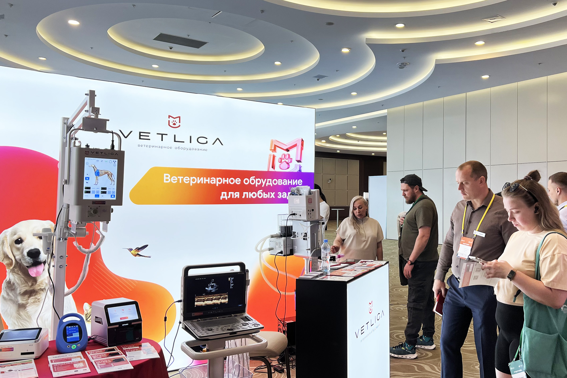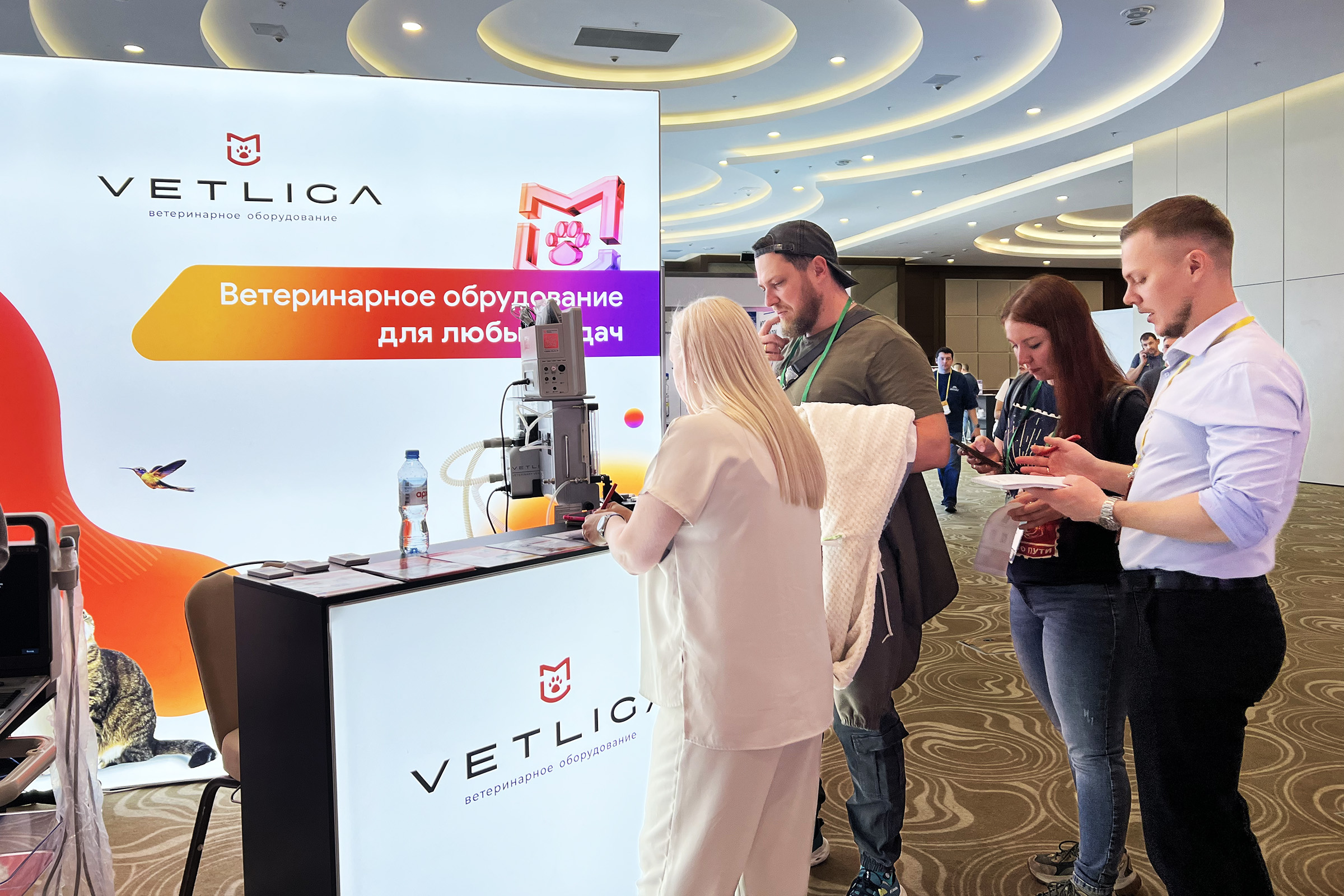 В рамках конференции была организована выставка, где свои продукты и решения представили профильные компании и партнеры из смежных индустрий. Особое внимание участников привлёк стенд компании VETLIGA, которая продемонстрировала современные разработки в области ветеринарной диагностики и мониторинга.