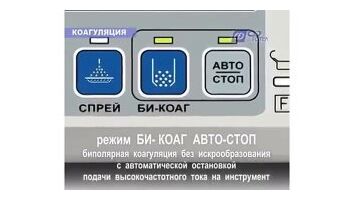 - Звуковая и световая индикация исправности цепи нейтрального электрода.