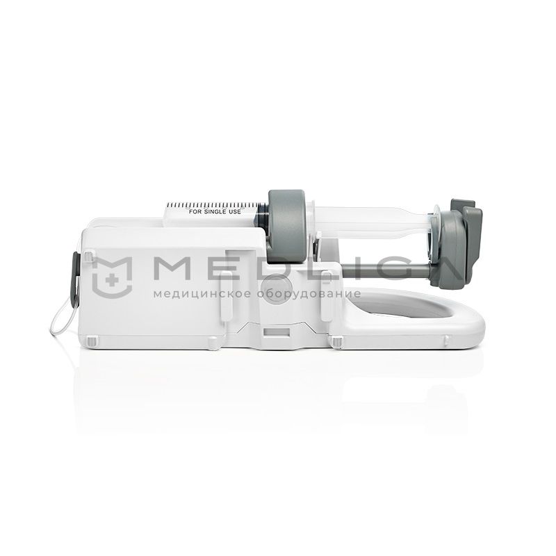 Компактный, лёгкий, простой в управлении и точный шприцевой насос. Подходит для использования в машинах скорой помощи. Может применяться для новорожденных благодаря высокой точности (плюс-минус 2-3 процента в зависимости от скорости потока). Масса 1,8 кг, есть ручка для переноски. Интуитивно понятное управление. Аппарат можно очищать водой, он защищён от влаги и пыли.