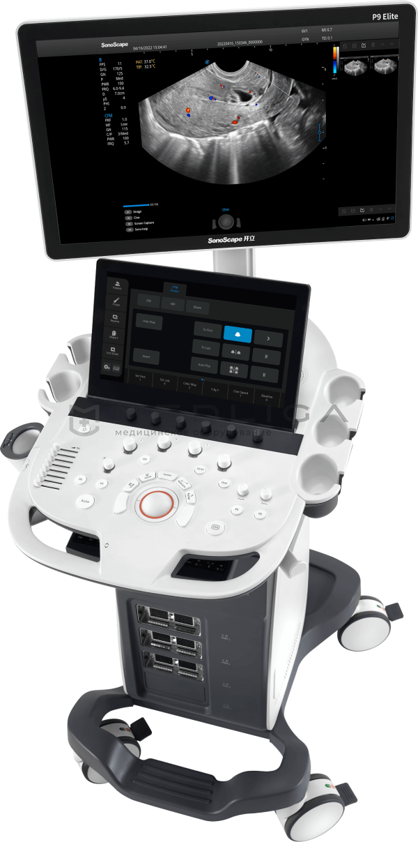 УЗИ аппарат SonoScape P9V — это ультразвуковый сканер для ветеринарии в стационарном исполнении, совмещающий в себе продвинутую эргономику и все необходимые программные опции для исследования животных. P9V подойдет для оснащения ветеринарной клиники или веткабинета любого уровня и позволит проводить исследования у крупных и мелких домашних животных, экзотических животных. Аппарат оснащен монитором с диагональю 21.5“, сенсорной панелью 13.3“ для быстрого доступа к настройкам аппарата и управлению, 3 активными портами для подключения датчиков и 2 паркинговыми портами. Ветеринарный ультразвуковой аппарат SonoScape P9V отличается прекрасной серошкальной визуализацией и цветным допплером. По сравнению с другими аппаратами УЗИ диагностики, данная модель отличается отличным соотношением цены и функционала.