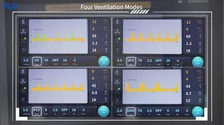 Четыре режима вентиляции: VS, VCV, PCV и SIMV — являются стандартными, снижают сопротивление дыхательных путей и поддерживают различные виды хирургических вмешательств.