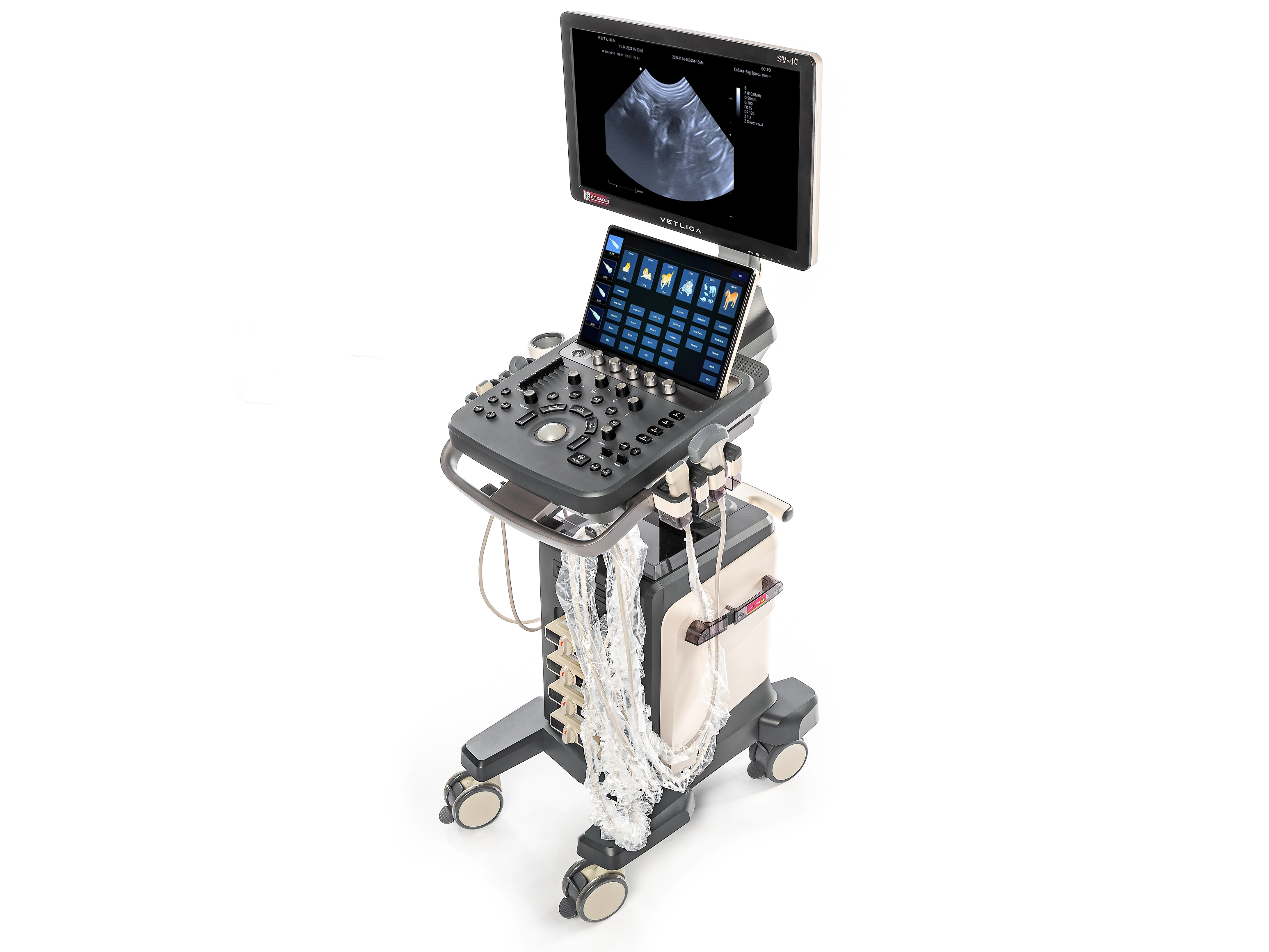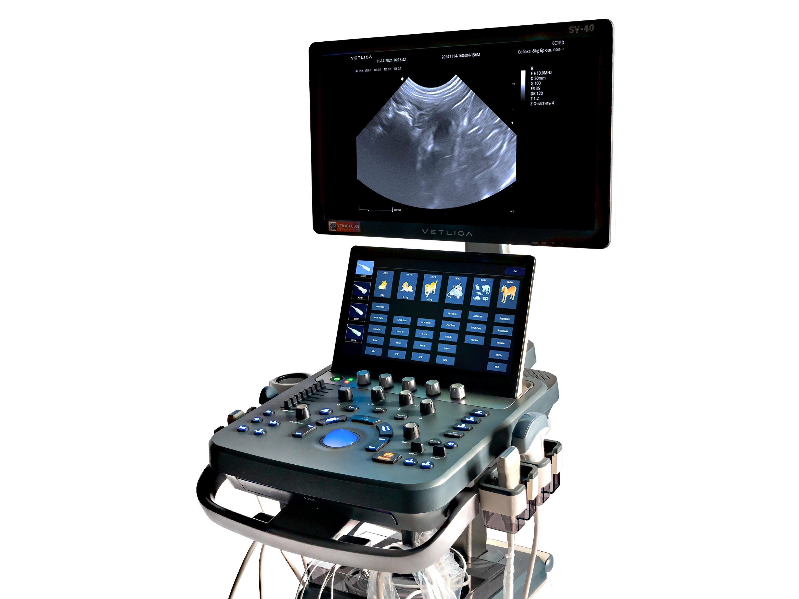 VETLIGA SV-40 создавался как универсальный стационарный ветеринарный УЗ-аппарат высокого класса, где основной акцент сделан на качество визуализации, точность измерений и широкий выбор поддерживаемых датчиков для работы в разных клинических сценариях. Эргономика продумана для комфортной работы при высокой нагрузке, а большое количество физических элементов управления и интуитивно понятный интерфейс делают переход на аппарат быстрым и удобным.