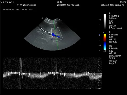 • Сосуды и допплер у мелких/средних животных: периферические сосуды, контроль кровотока, оценка васкуляризации образований