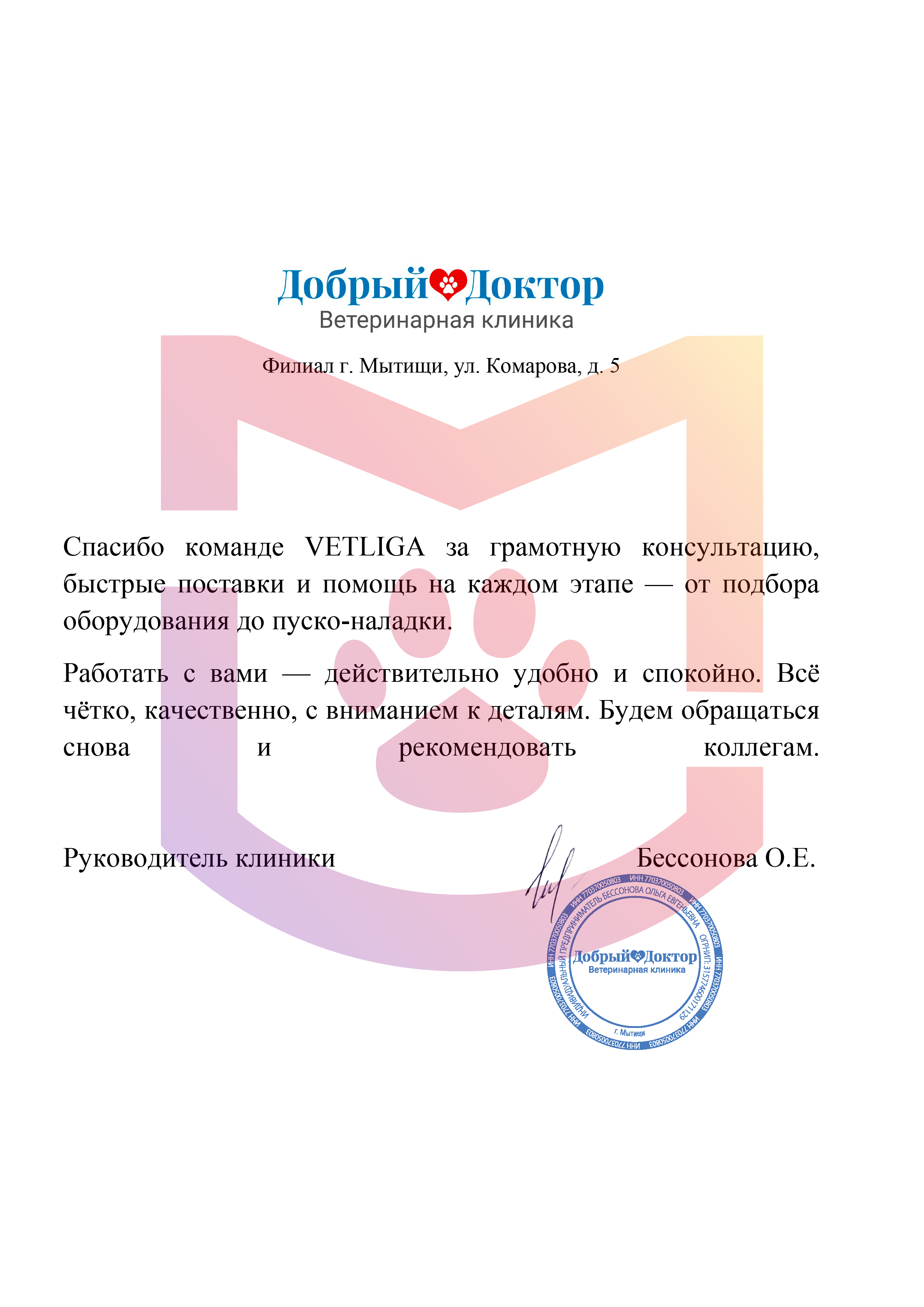 Отзыв от ветеринарной клиники «Добрый Доктор» г. Мытищи